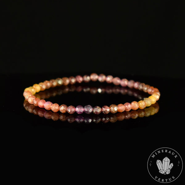 Bracelet fin Saphir Jaune et Rose A perles 4mm couleurs en dégradé ron
